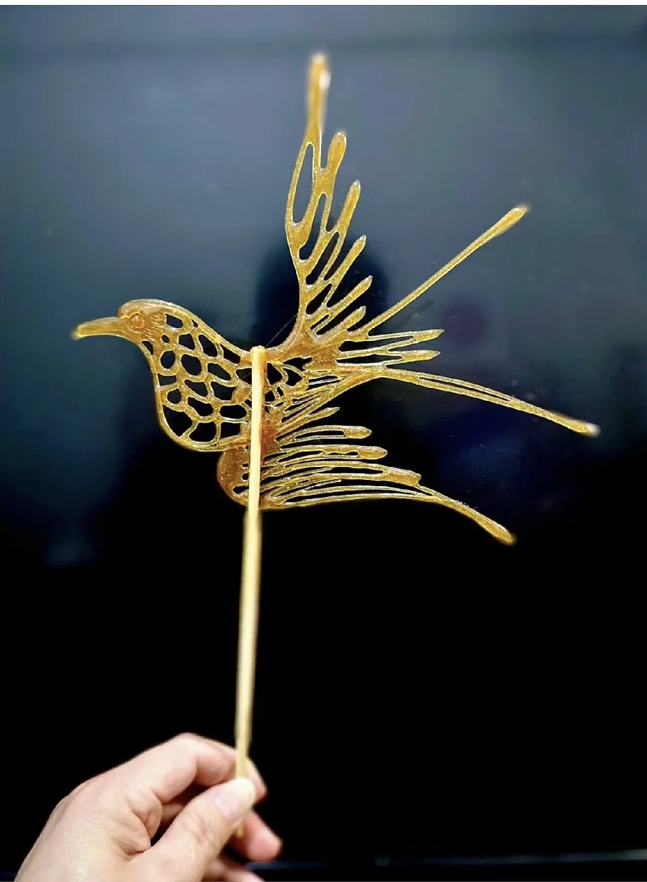 糖畫,一種古老而生動的藝術形式,源自民間,流傳至今。糖畫不僅僅是小食,更是文化傳播的載體是,穿越時空的文化藝術。